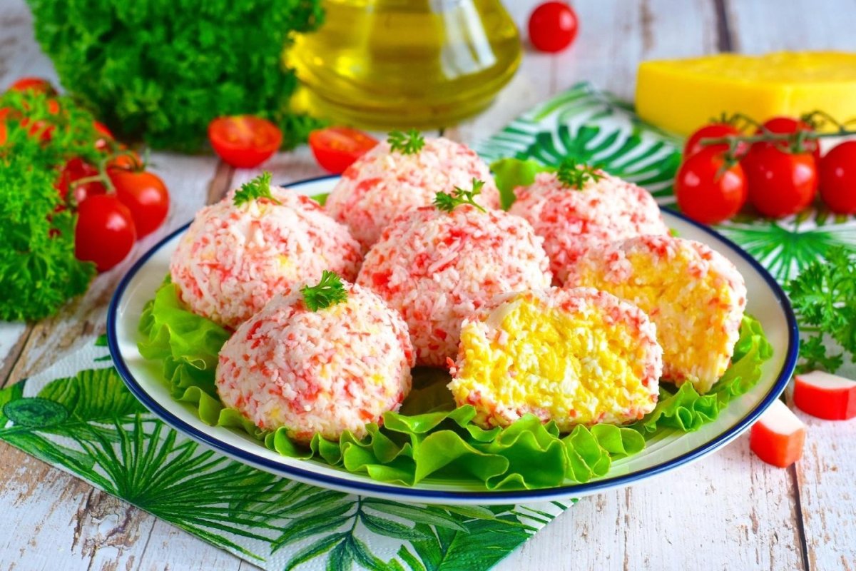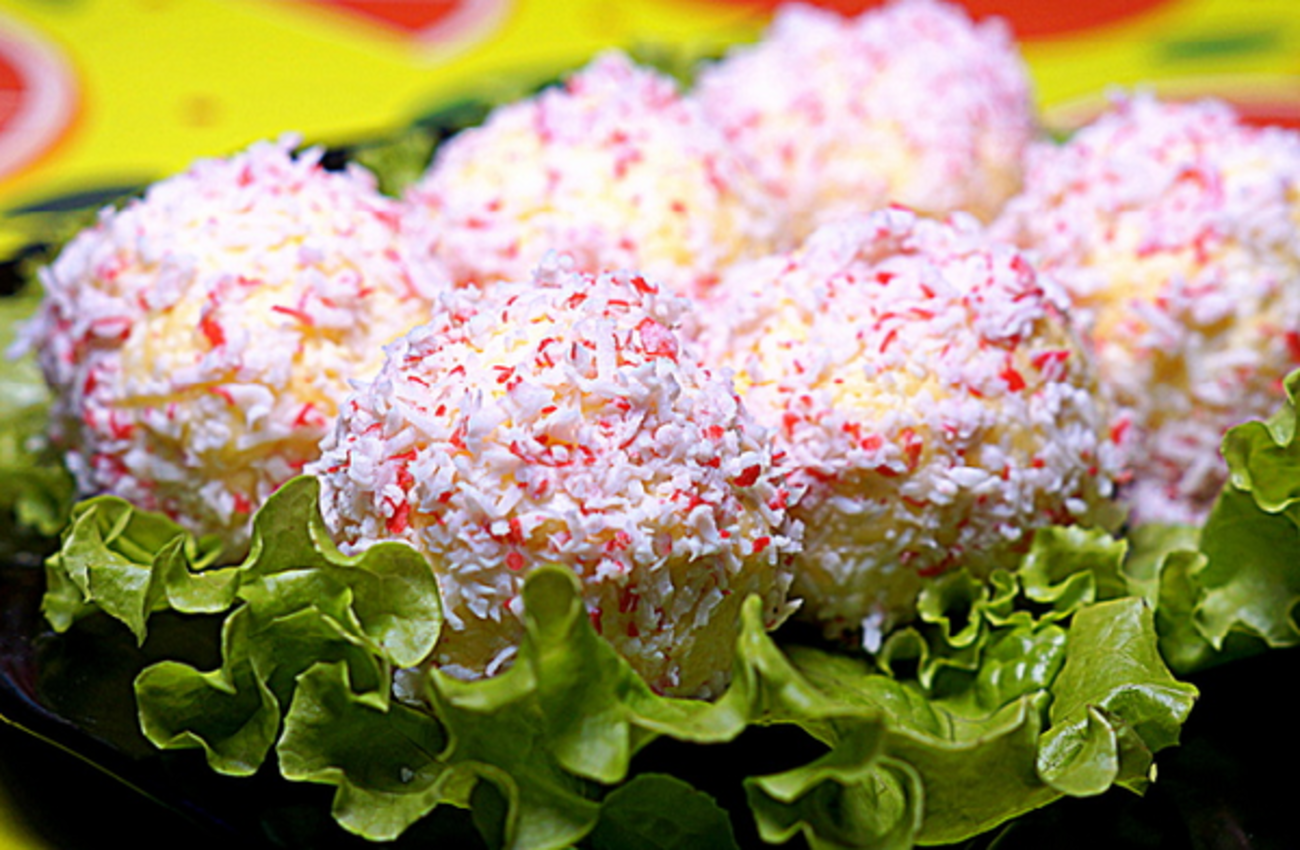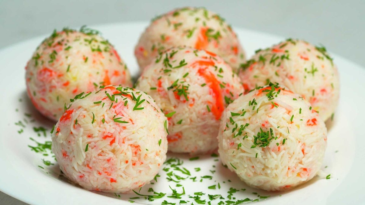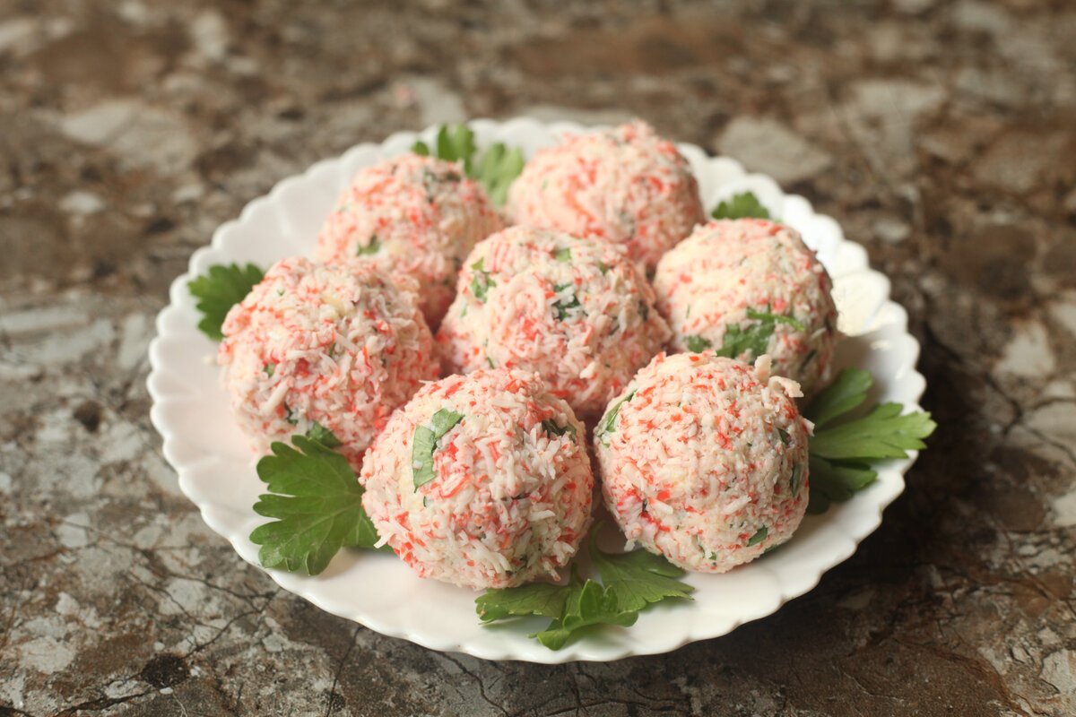 Закусочные шарики из крабовых палочек