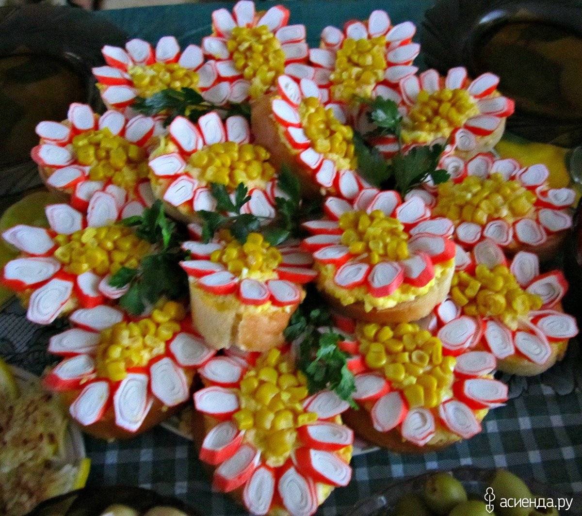 Цветы из крабовых палочек