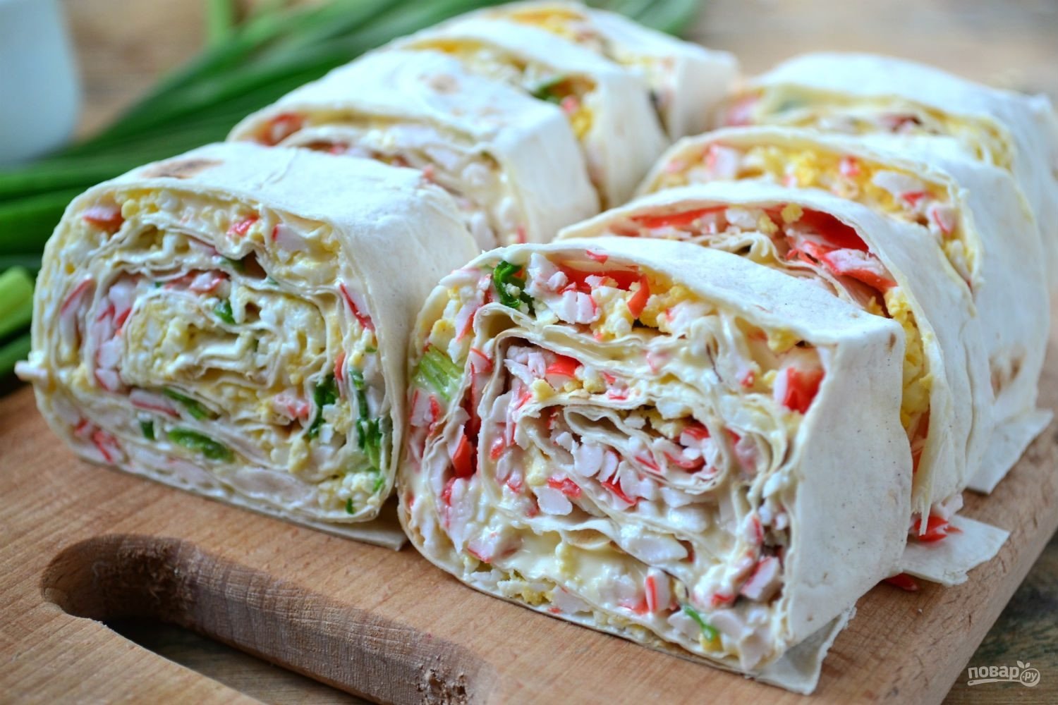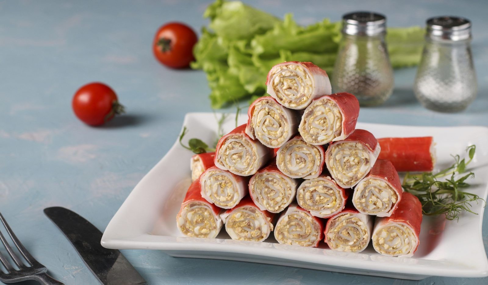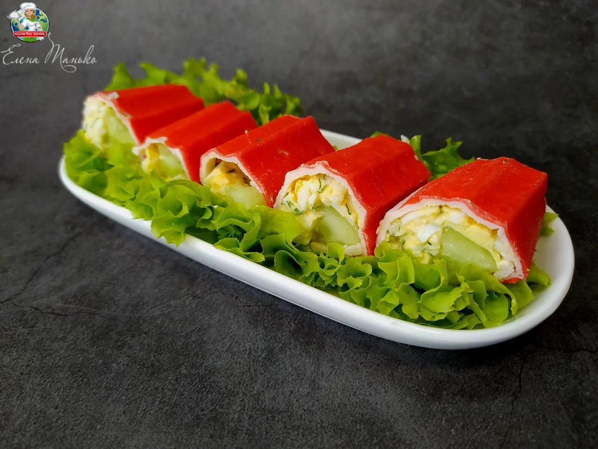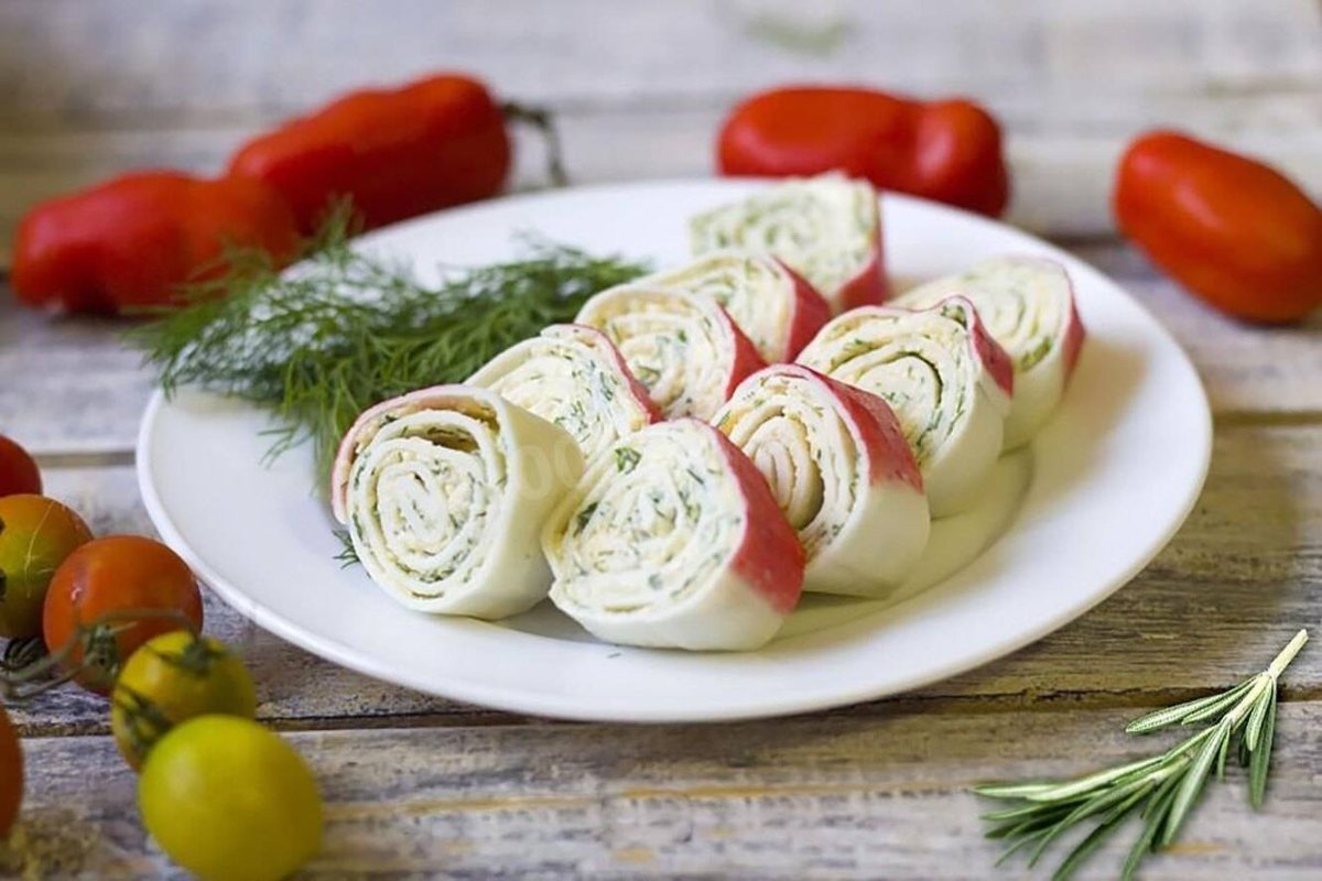 Рулетики из лаваша с крабовыми палочками