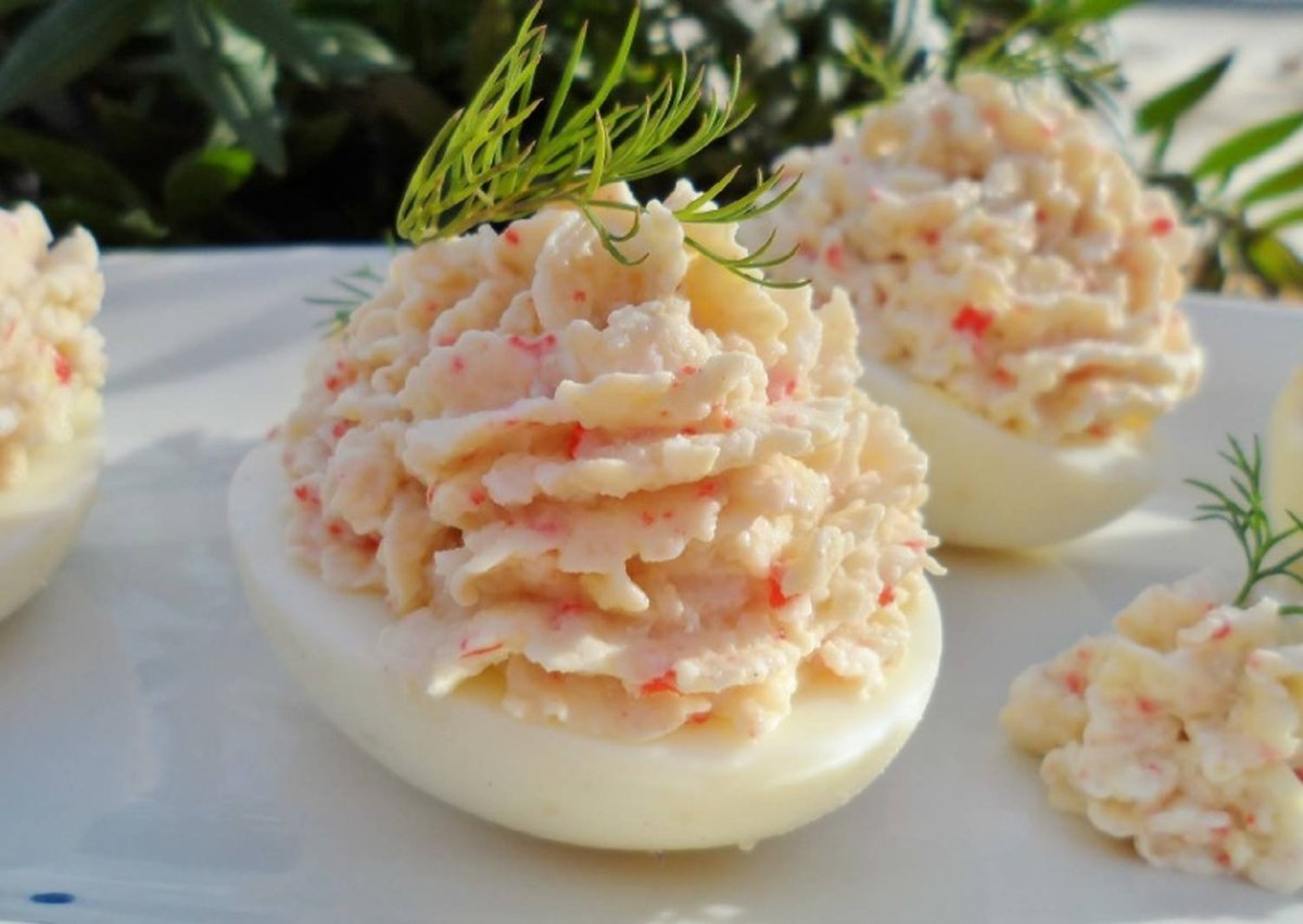 Яйца фаршированные крабовыми палочками