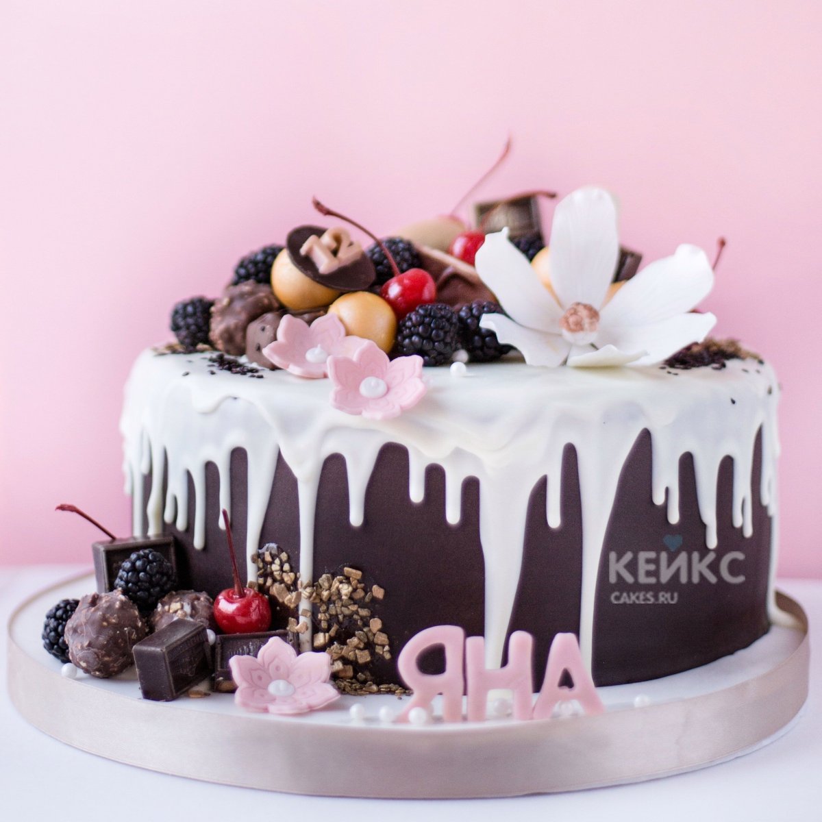 Декор торта с ТОПЕРОМ Happy Birthday розовый