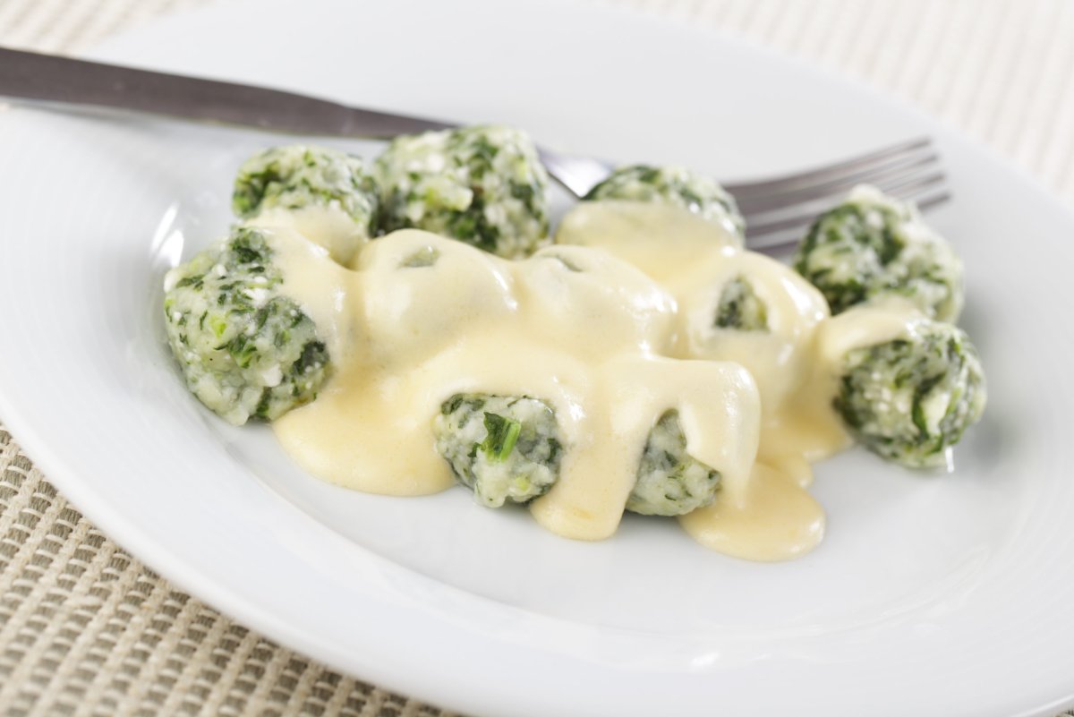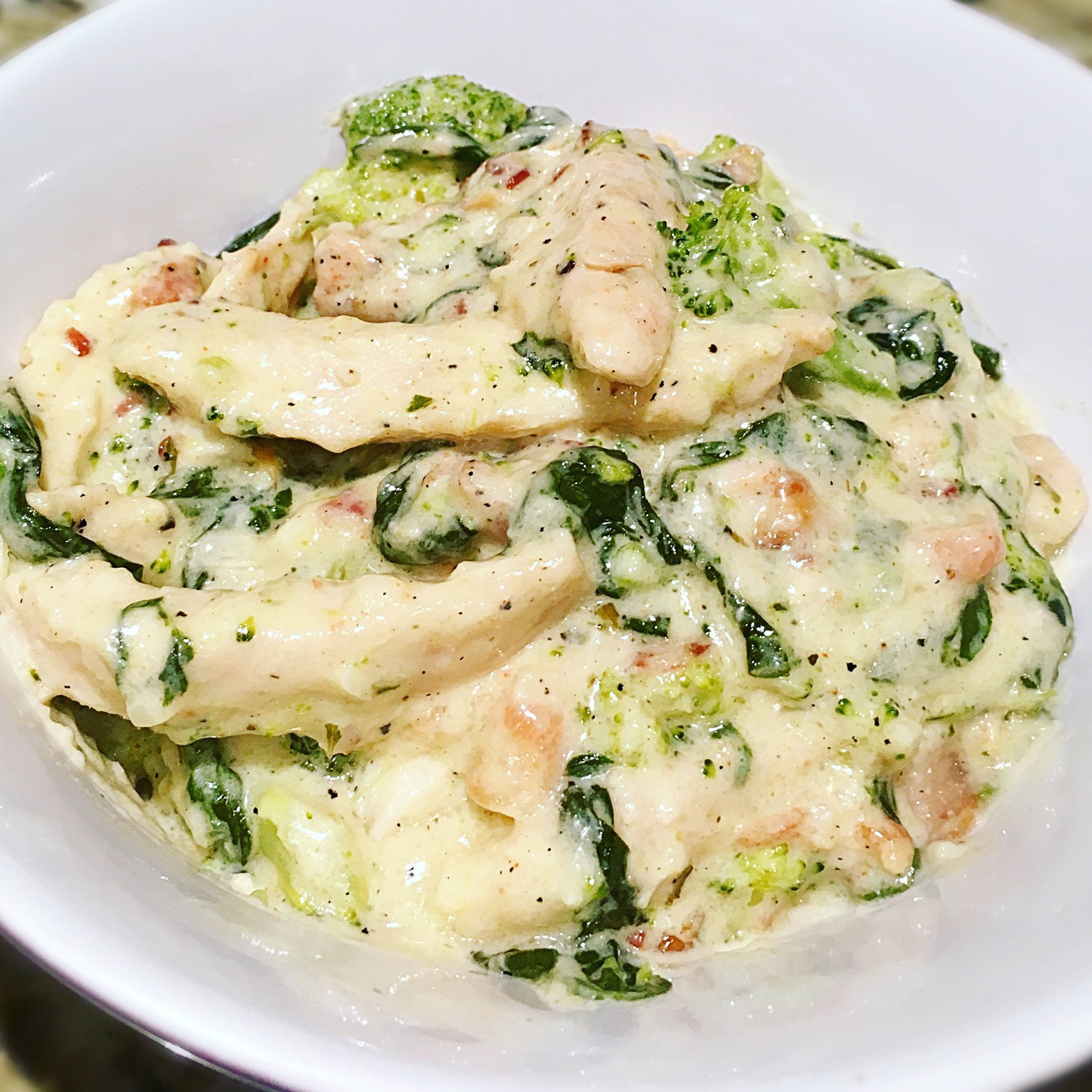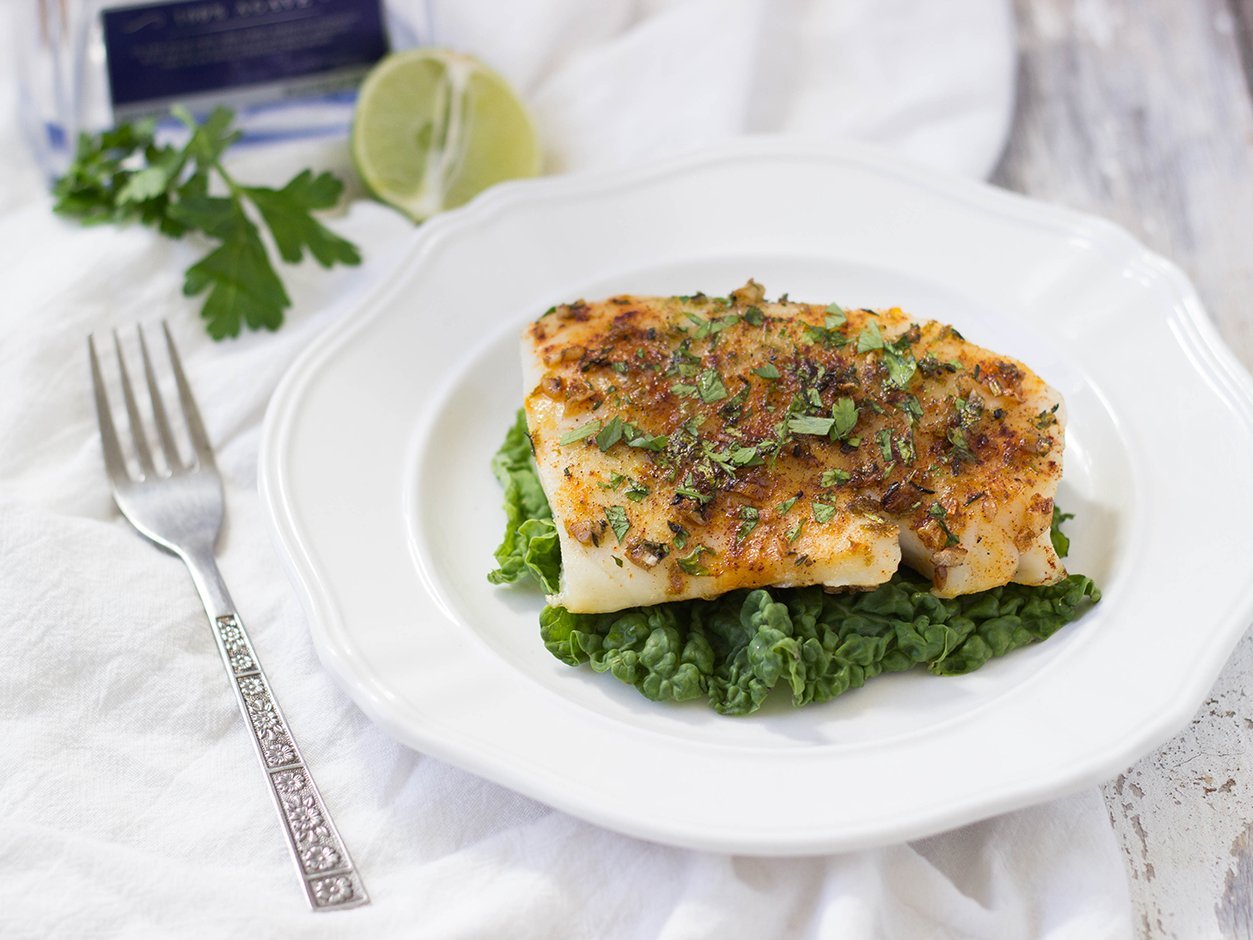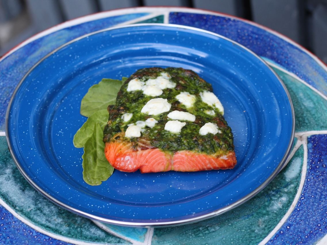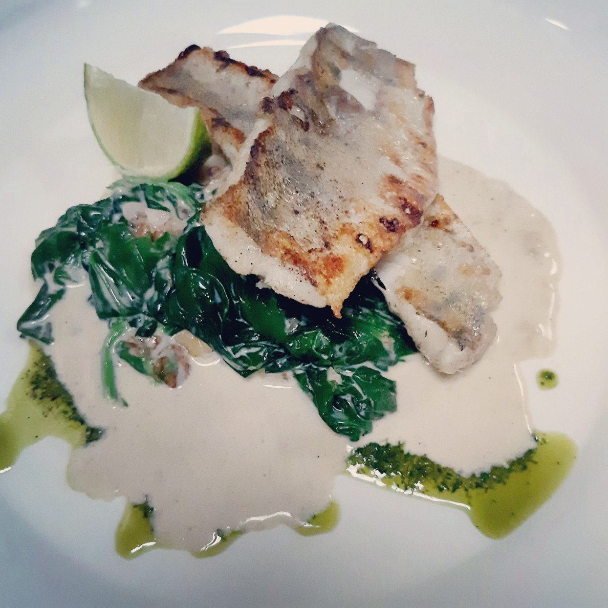 Филе лосося в сливочном соусе со шпинатом и грибами