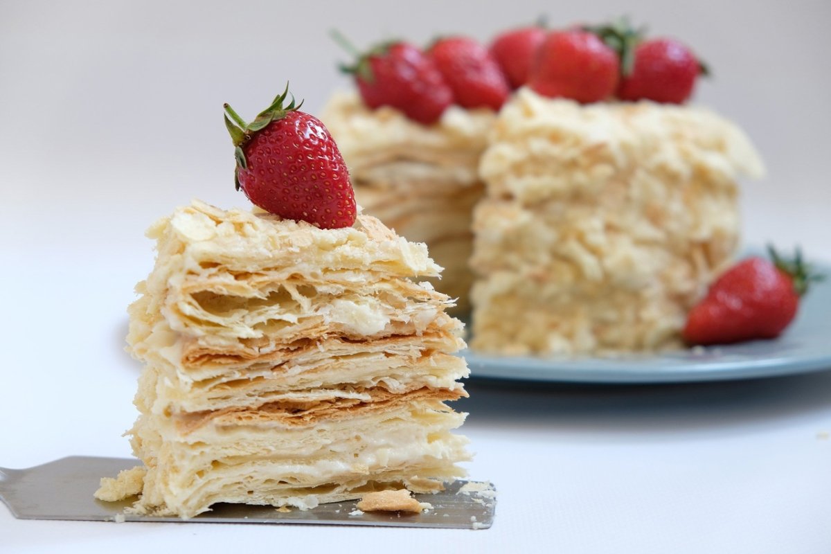 Пирожные Наполеон из слоеного теста с шоколадом картинка