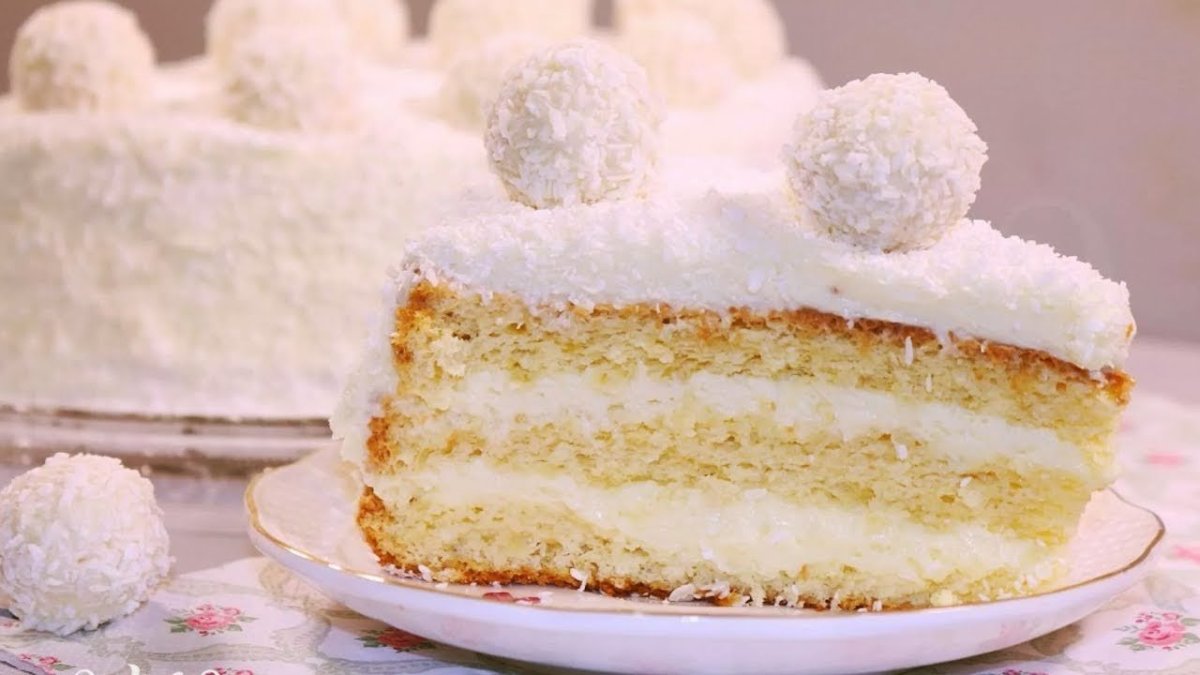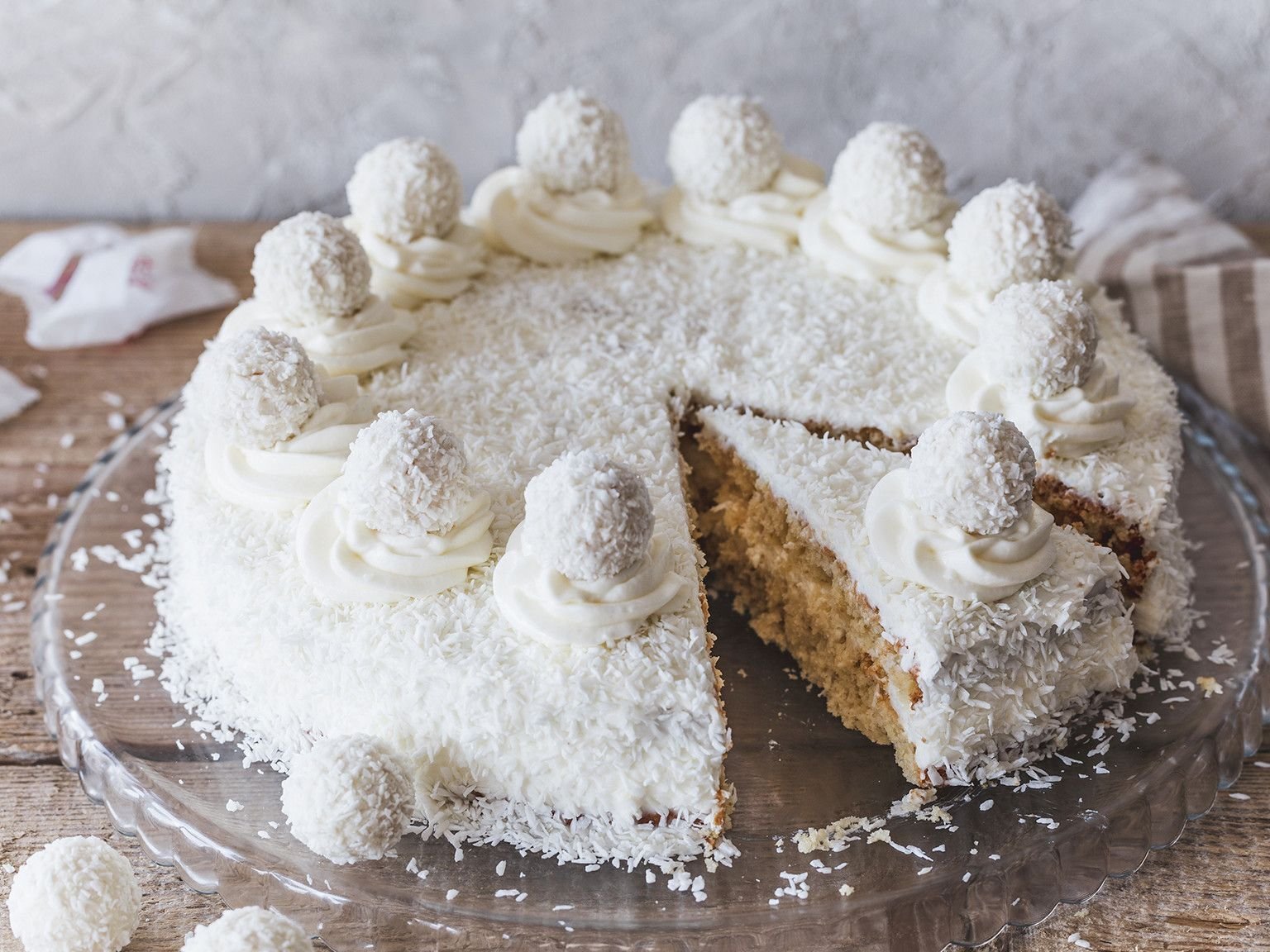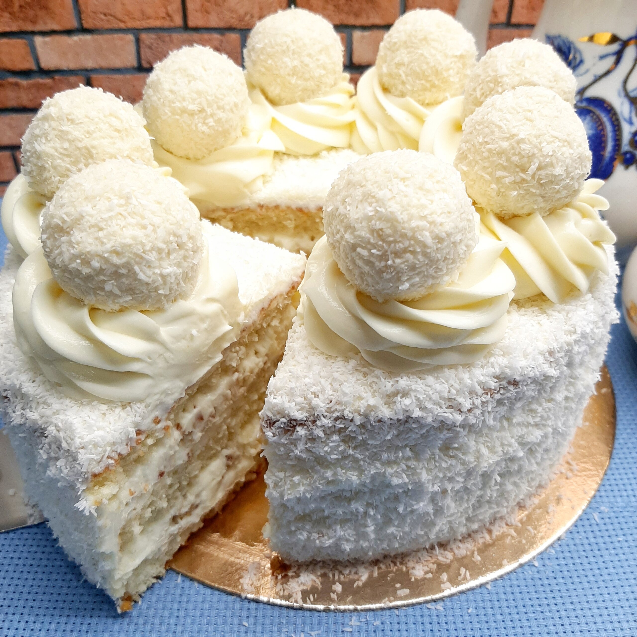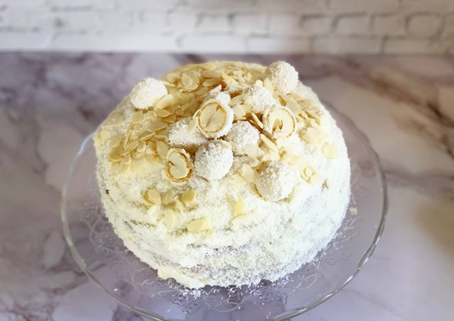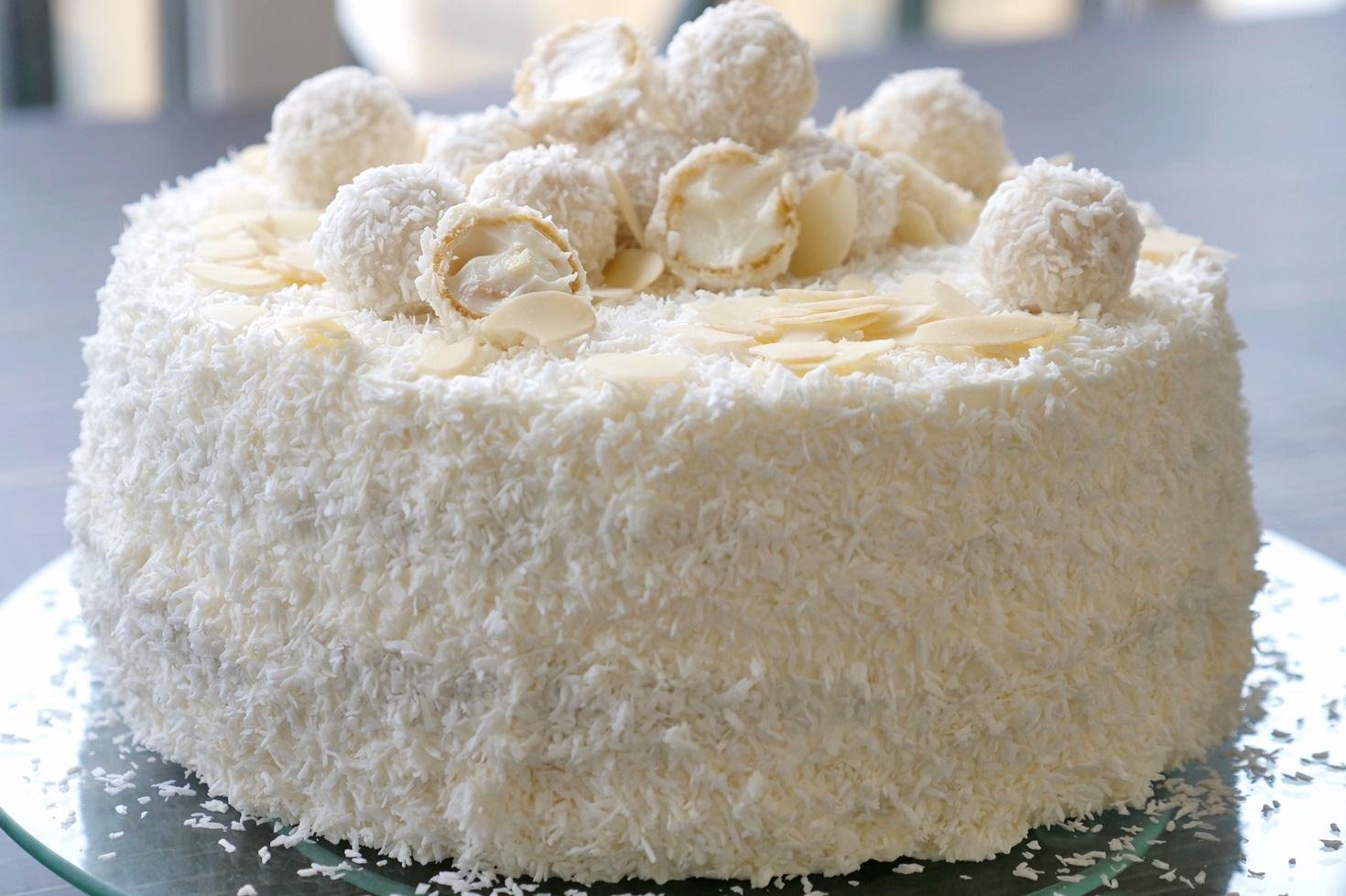 Торт Рафаэлло с кокосовой стружкой снаружи