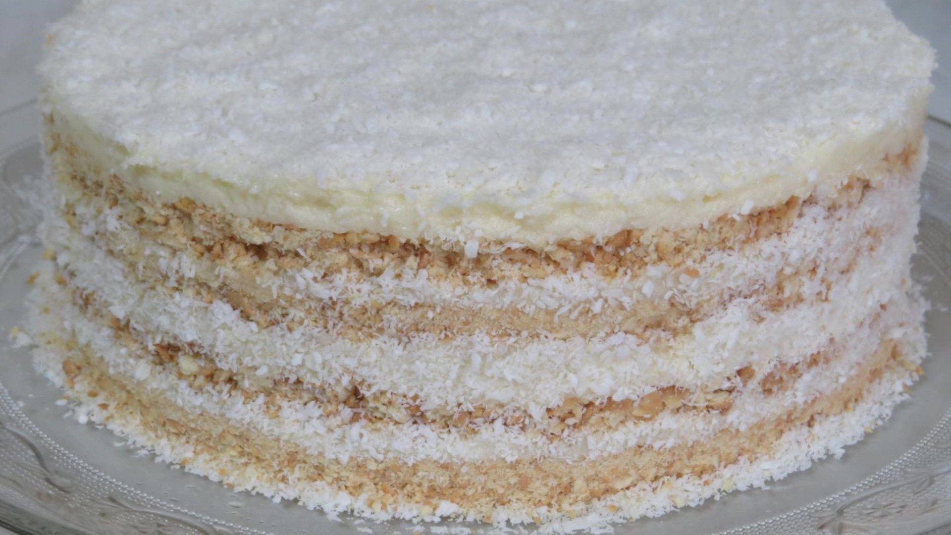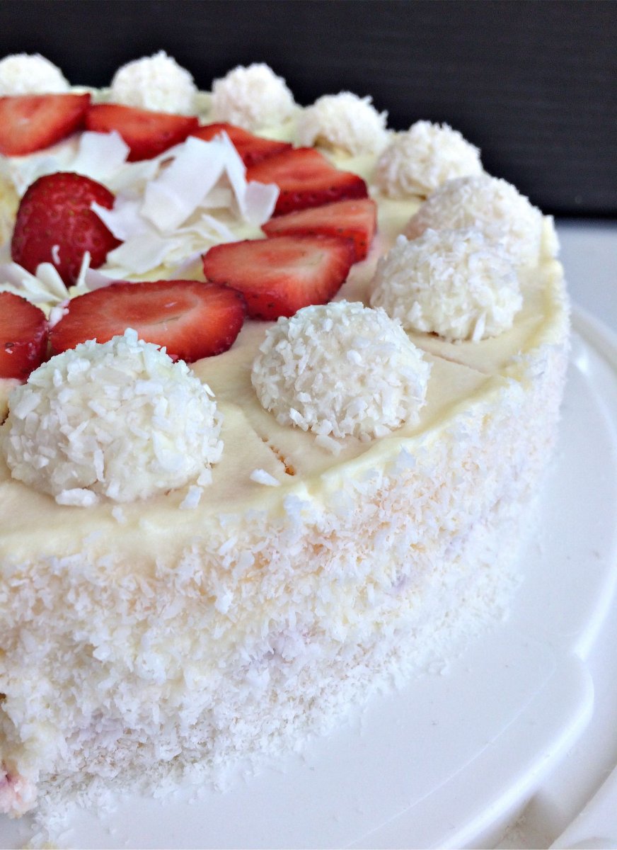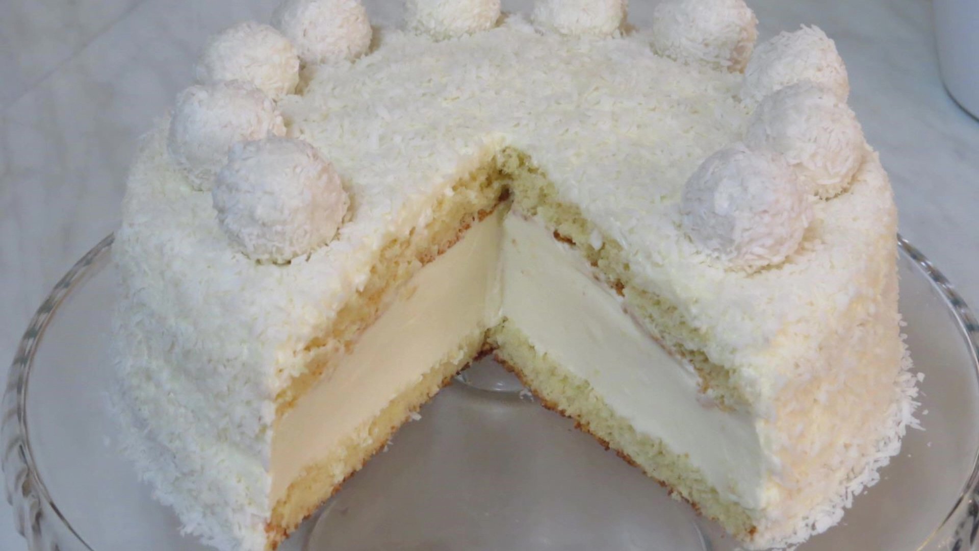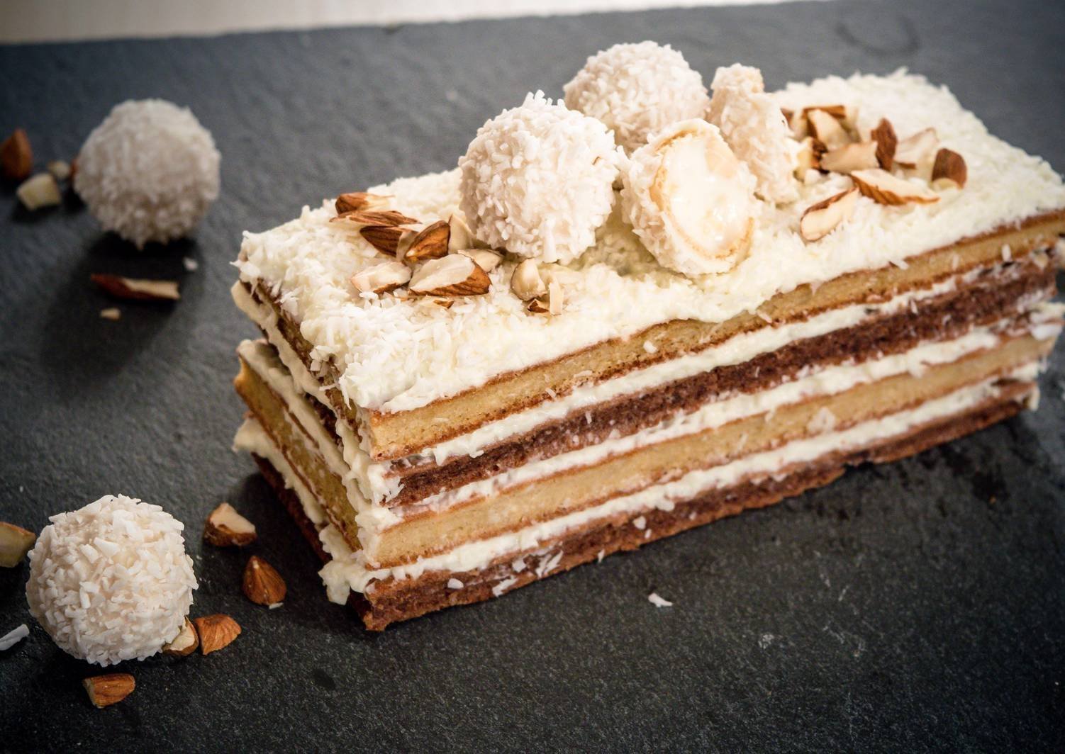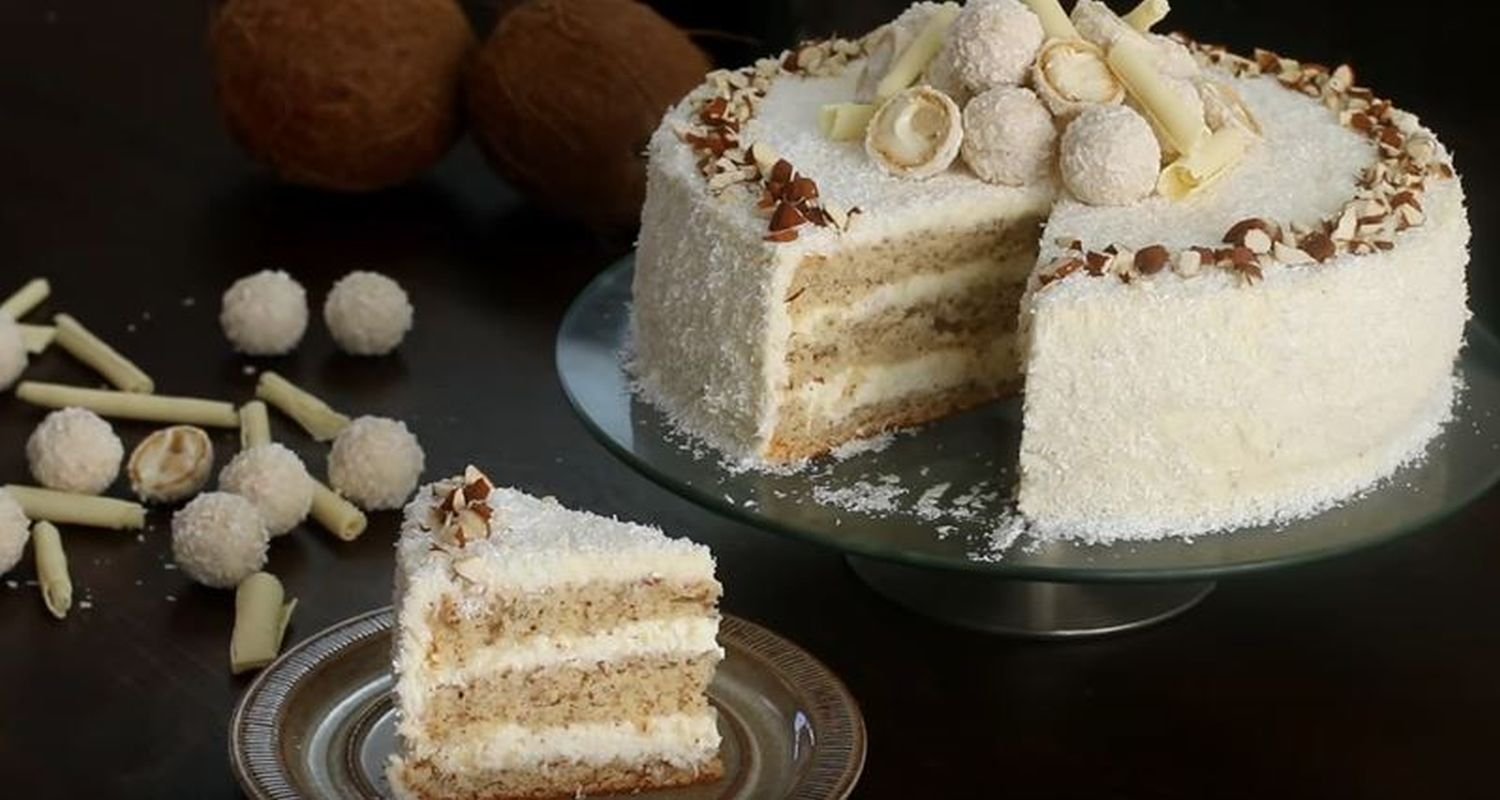 Торт Рафаэлло с кокосовой стружкой снаружи