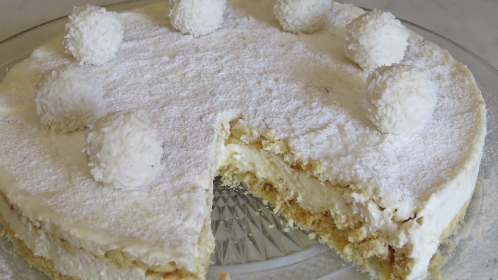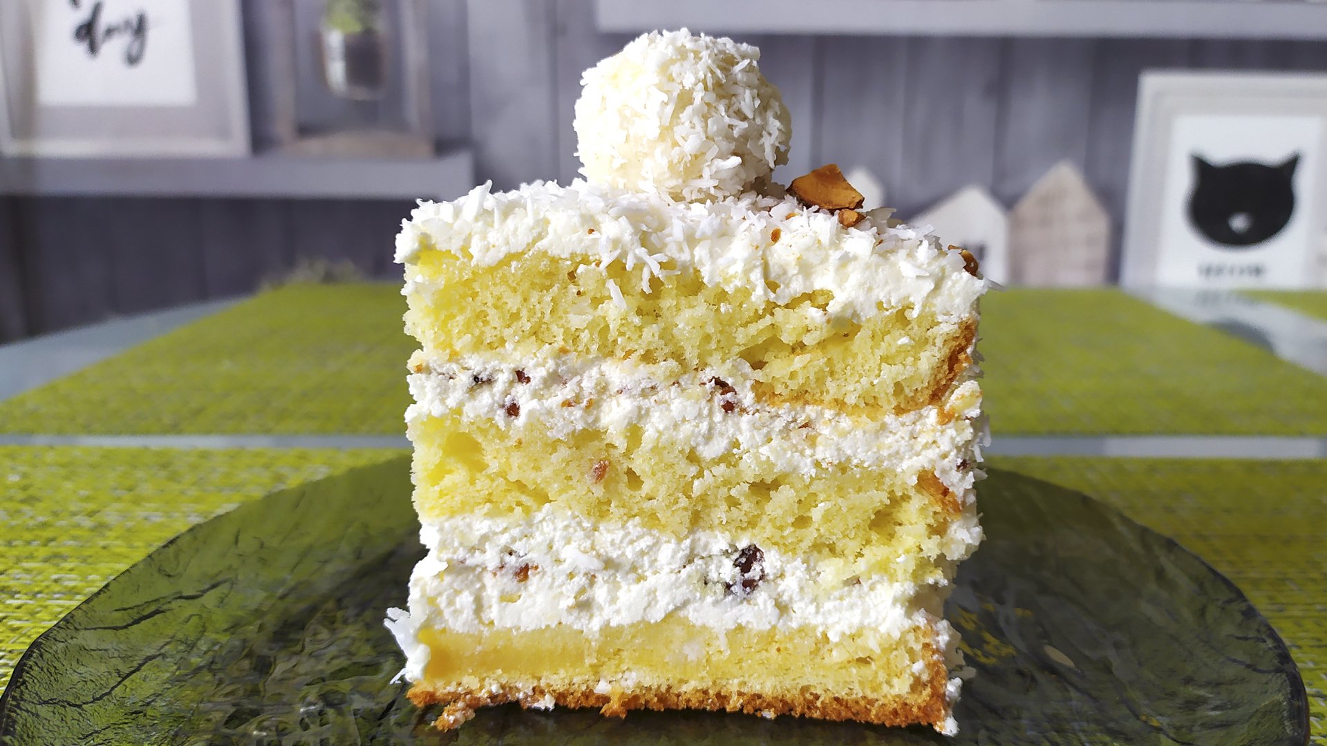 Торт Рафаэлло с кокосовой стружкой без выпечки