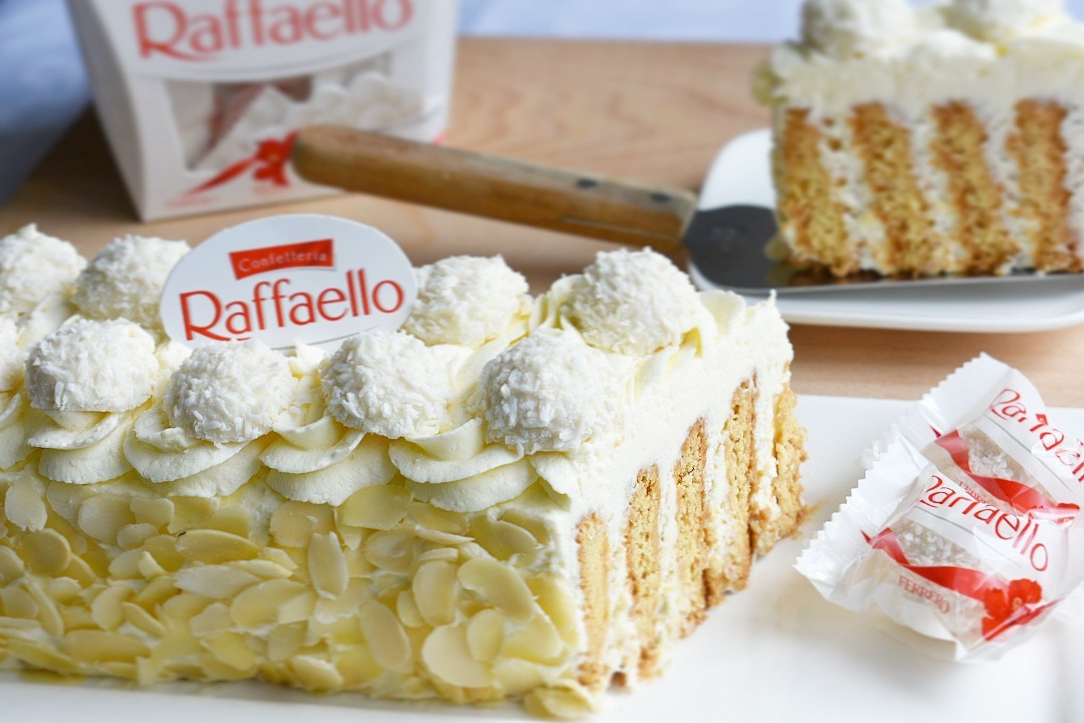 Украшение торта Рафаэлло конфетами Рафаэлло