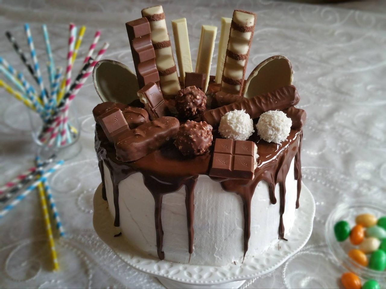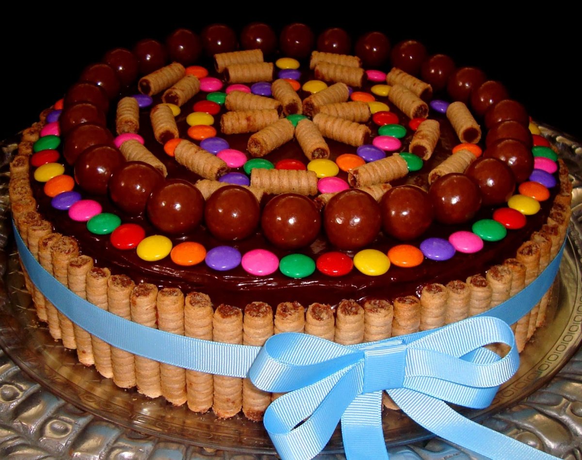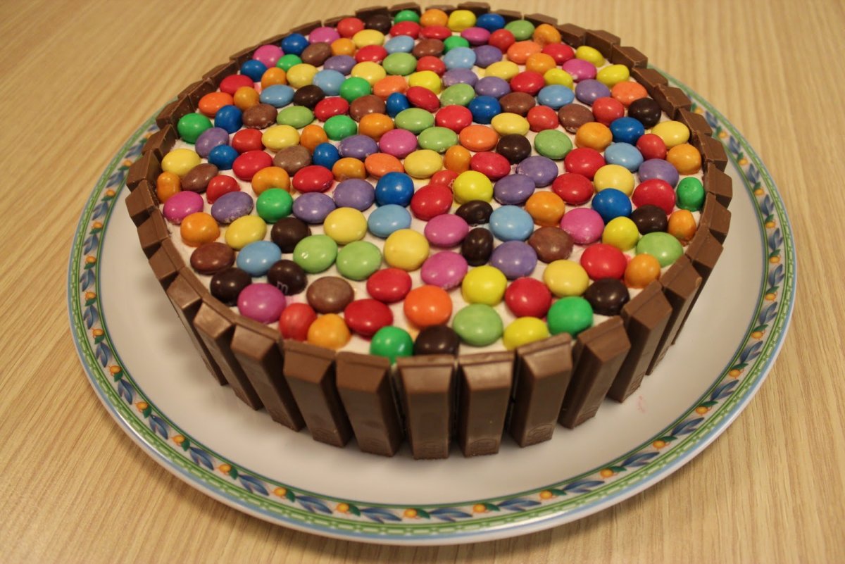 Украшение торта конфетами