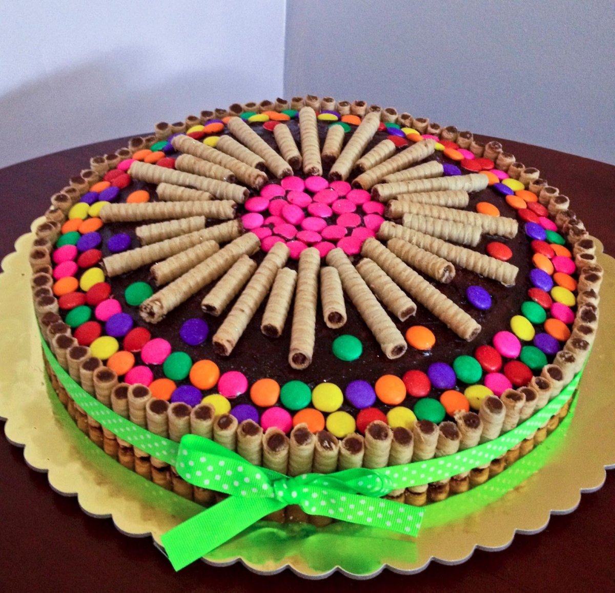 Украшение торта вафельными трубочками