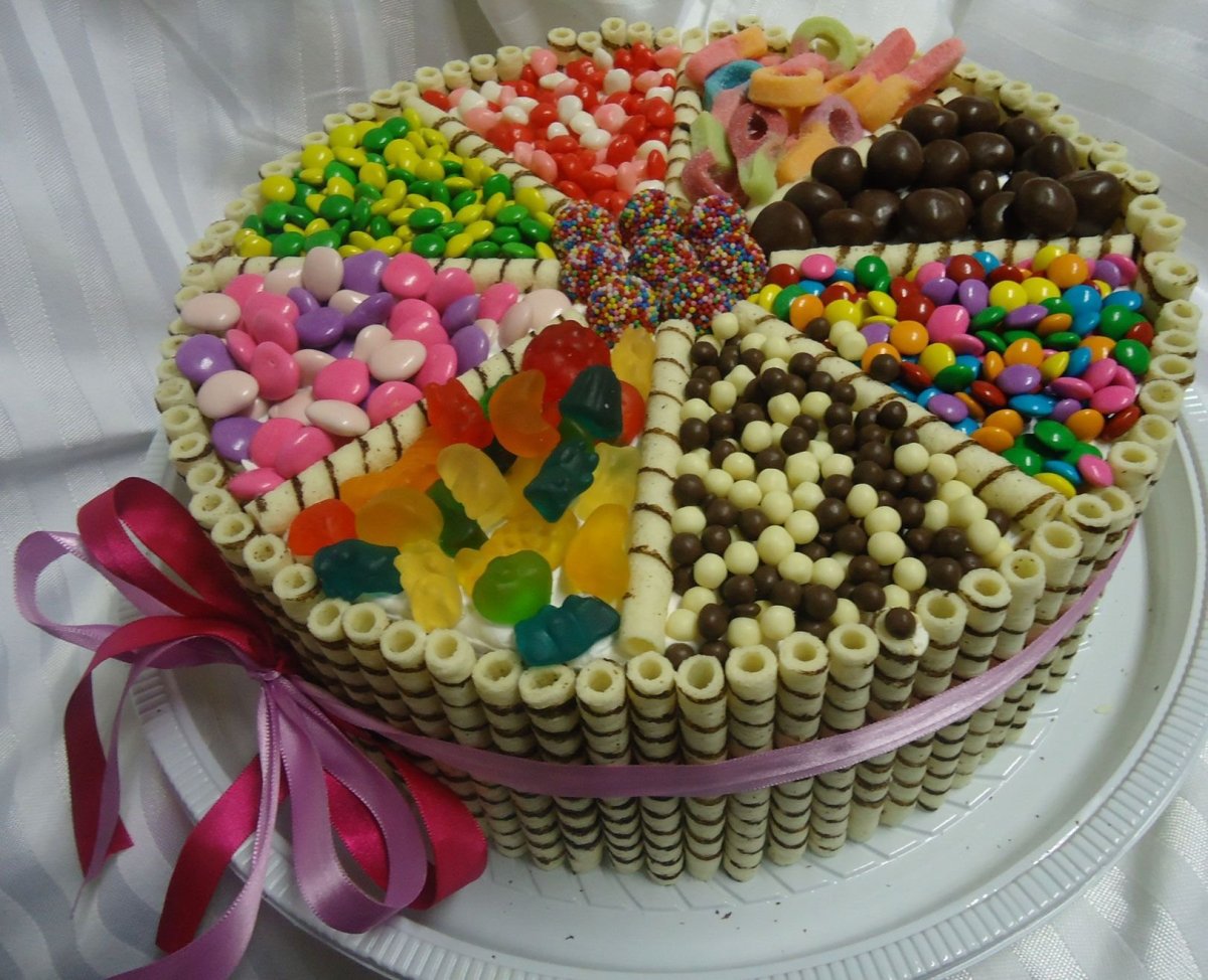 Украшение торта сладостями