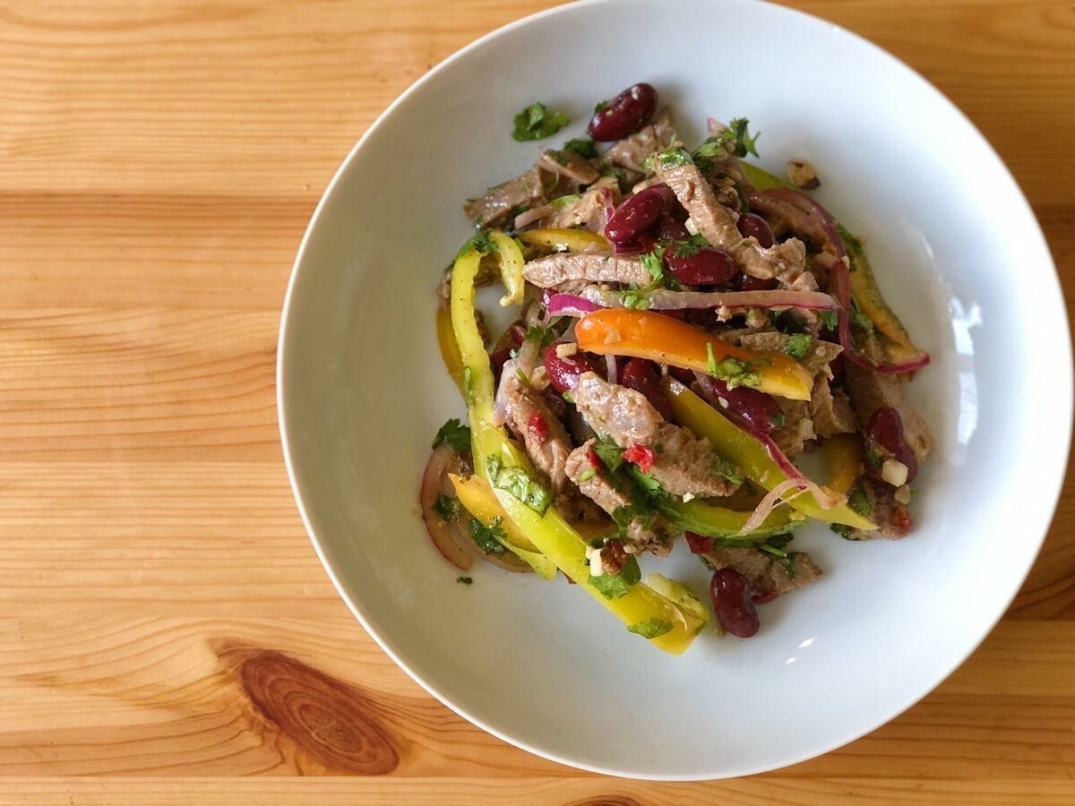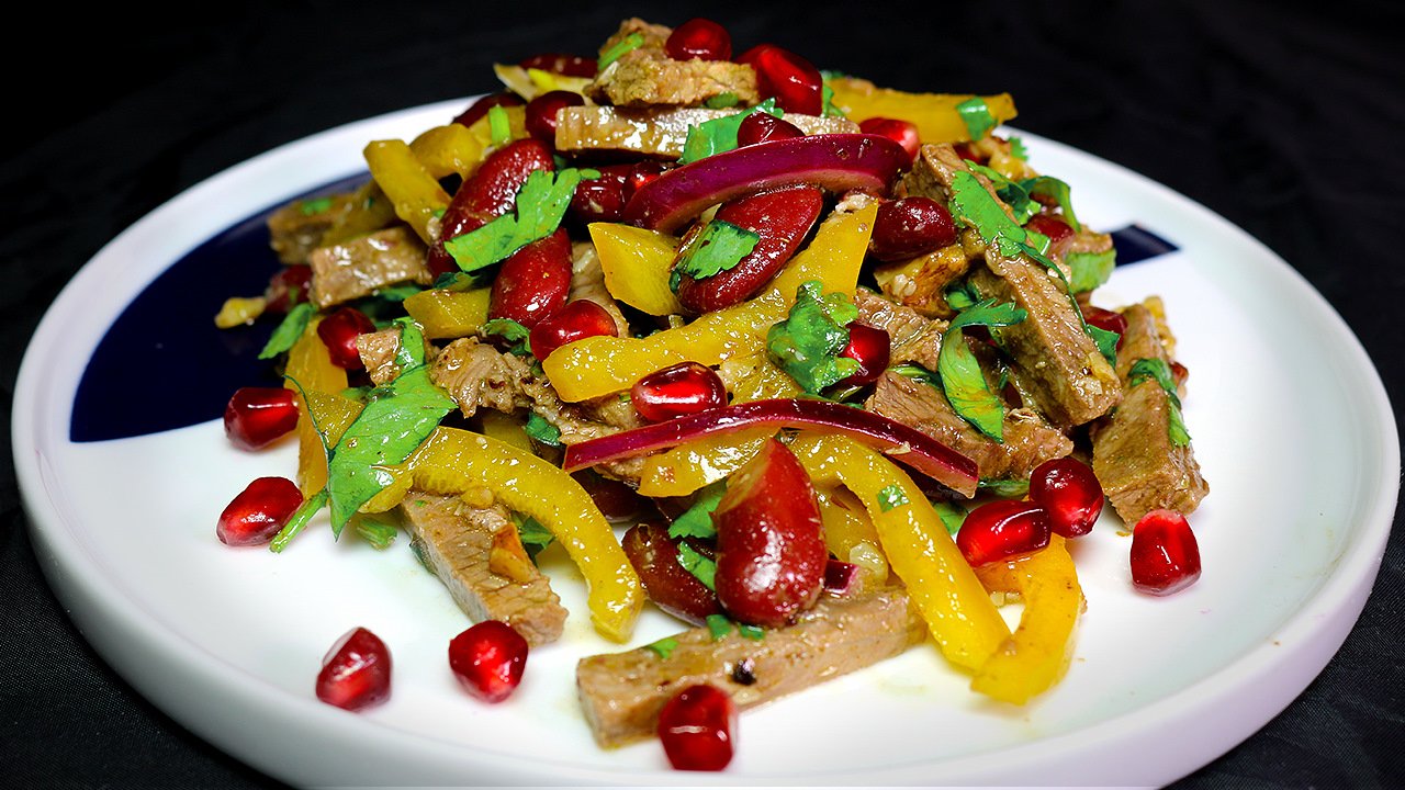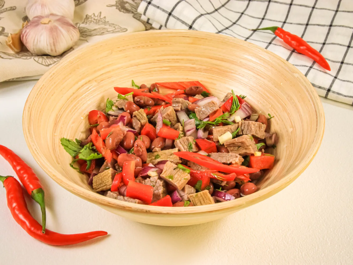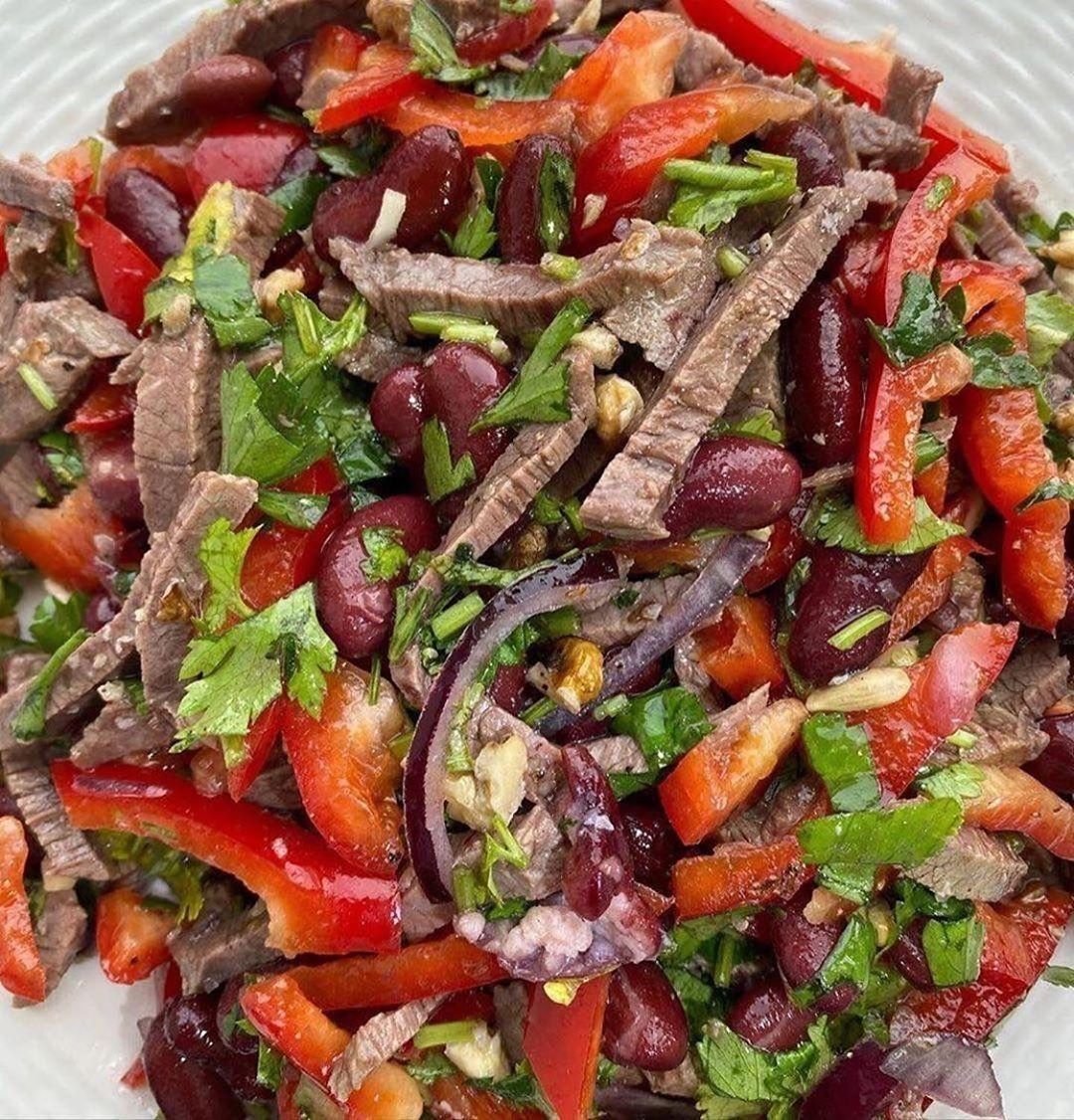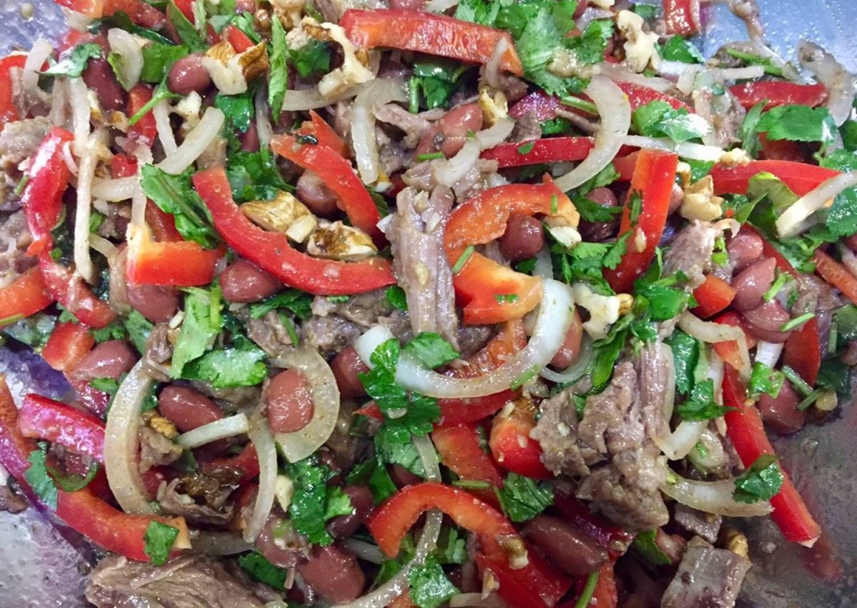 Салат Тбилиси с говядиной и фасолью и болгарским
