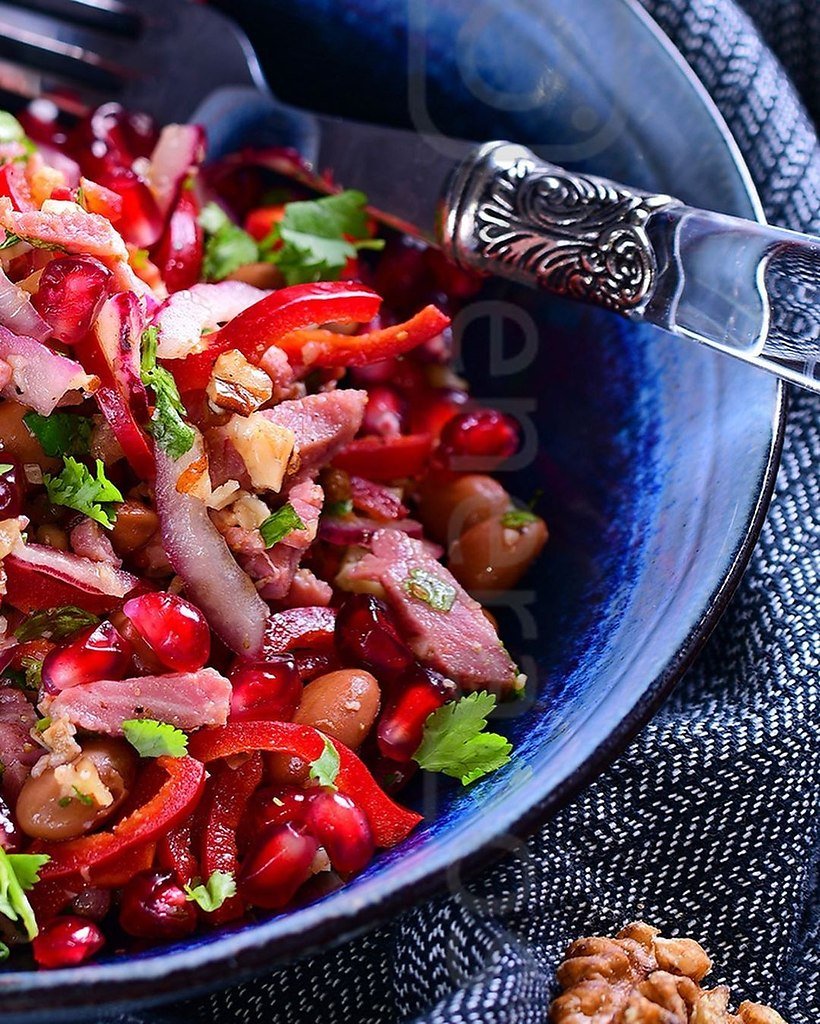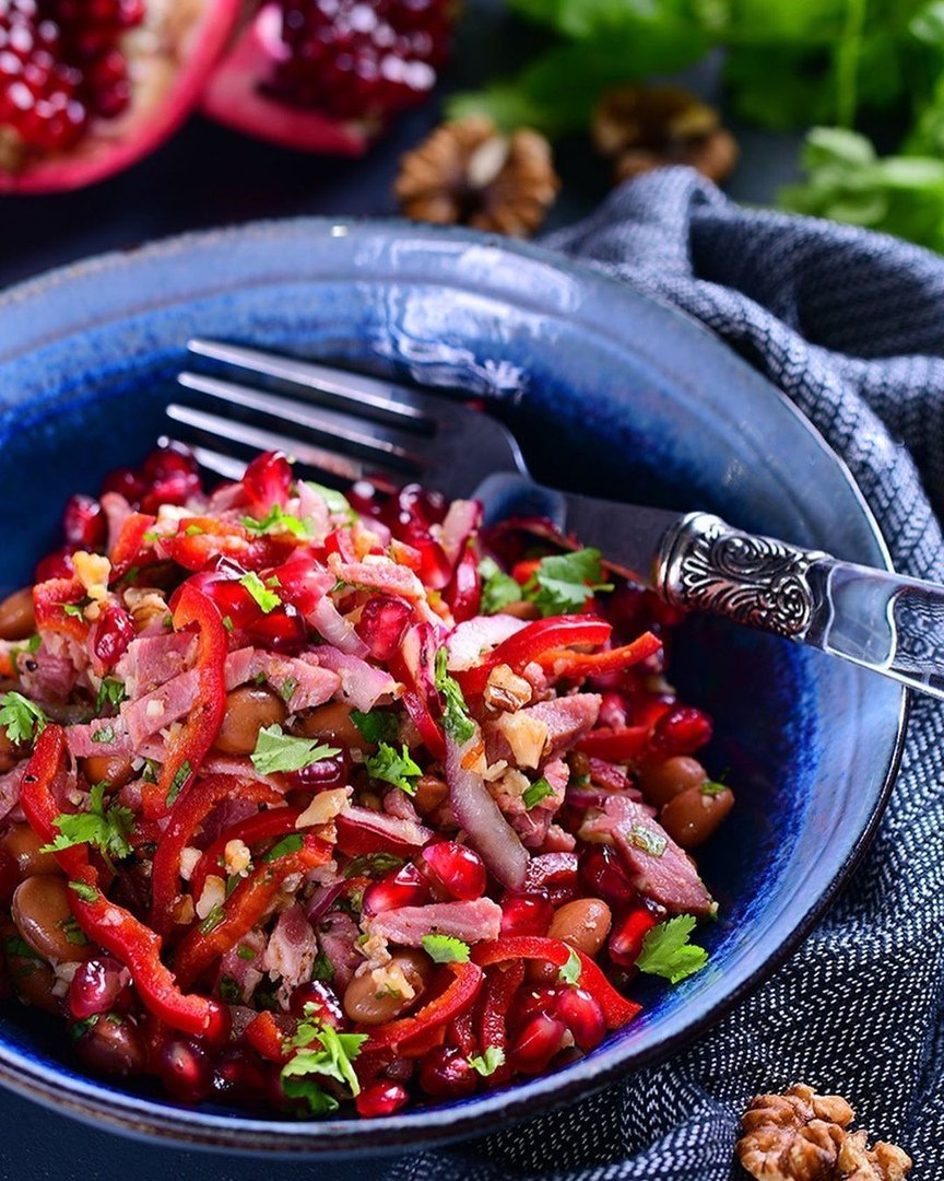 Салат из говядины с гранатом по-грузински без майонеза