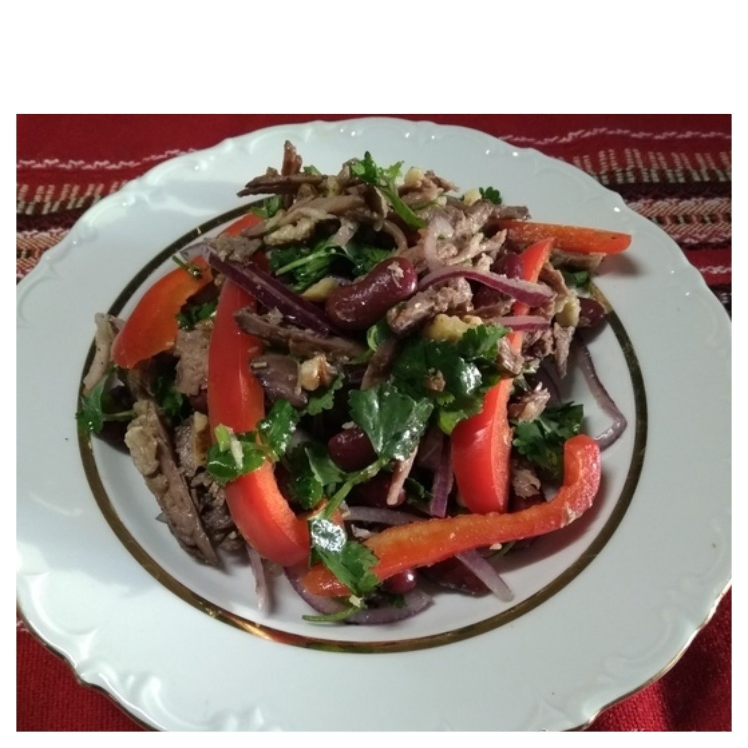 Салат Тбилиси с говядиной и фасолью и болгарским перцем