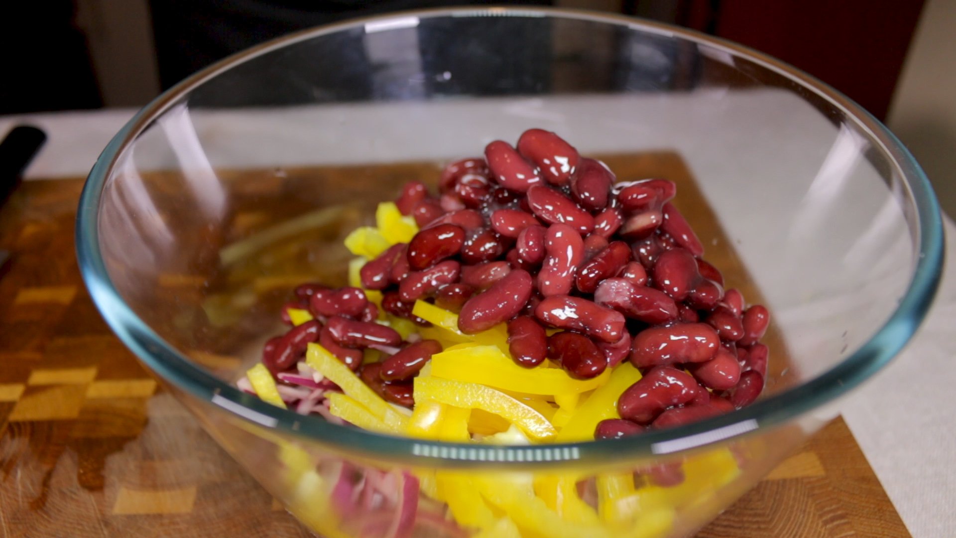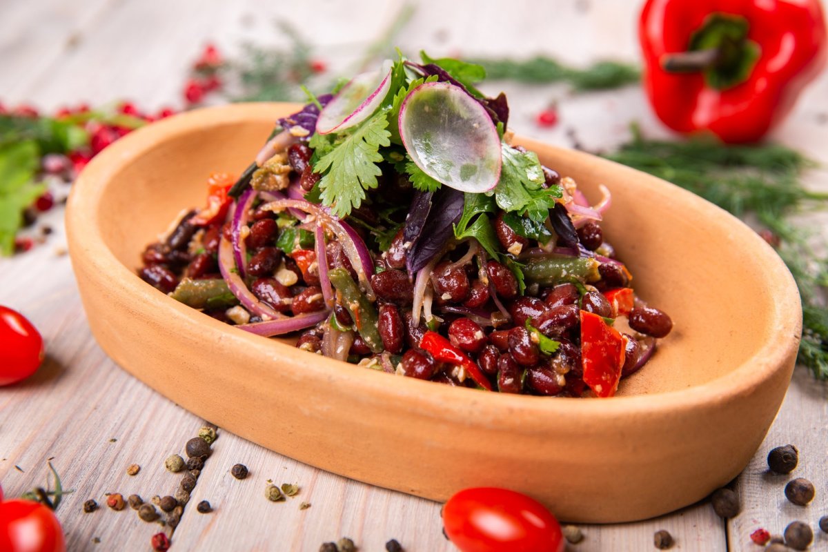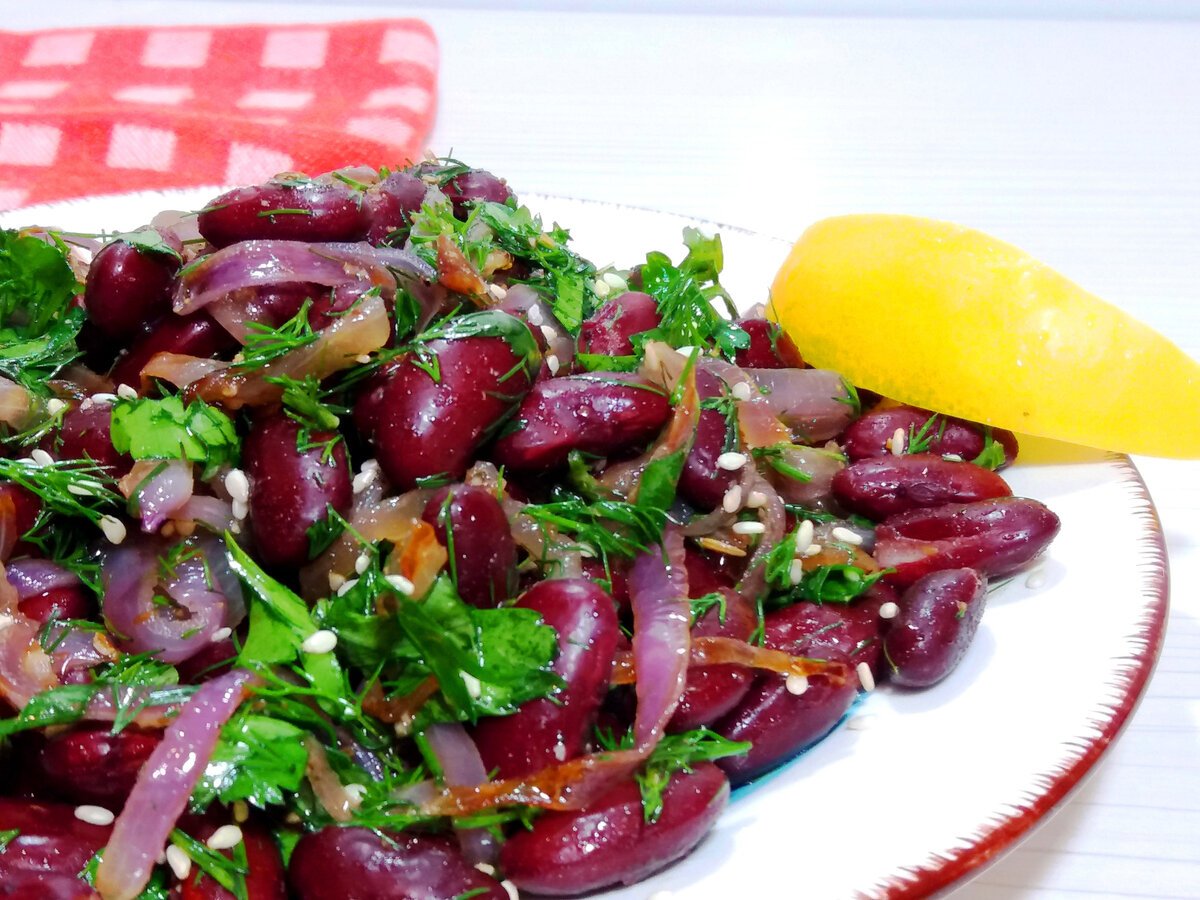 Теплый салат с красной фасолью