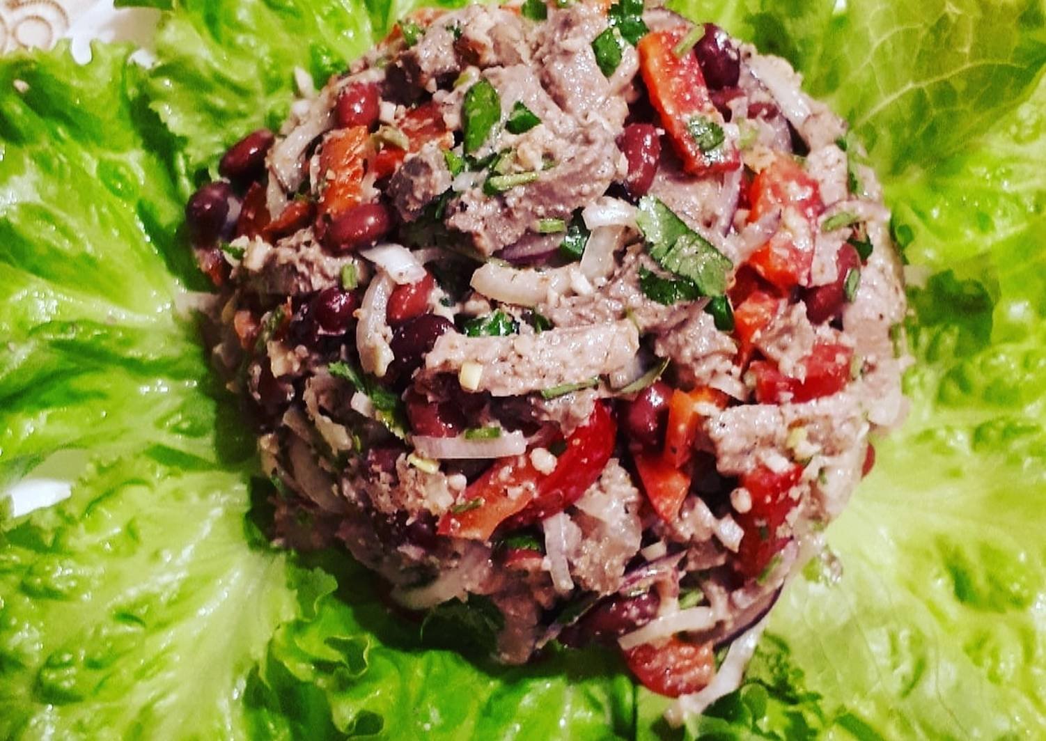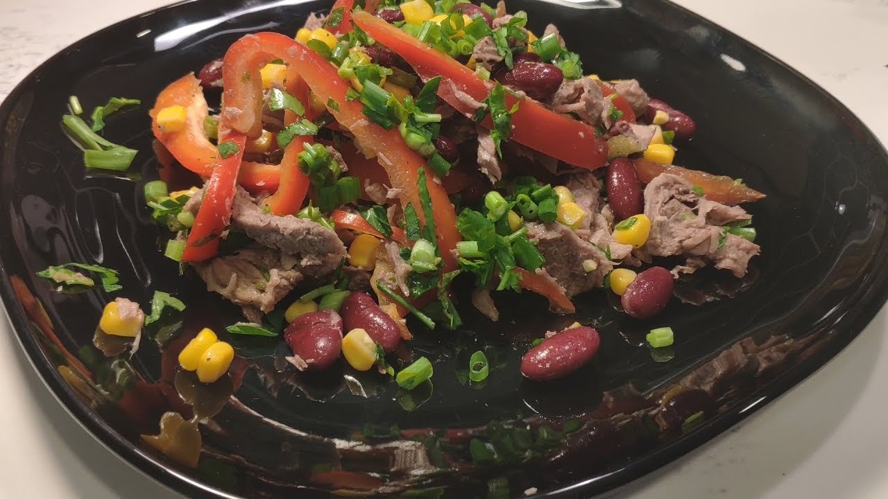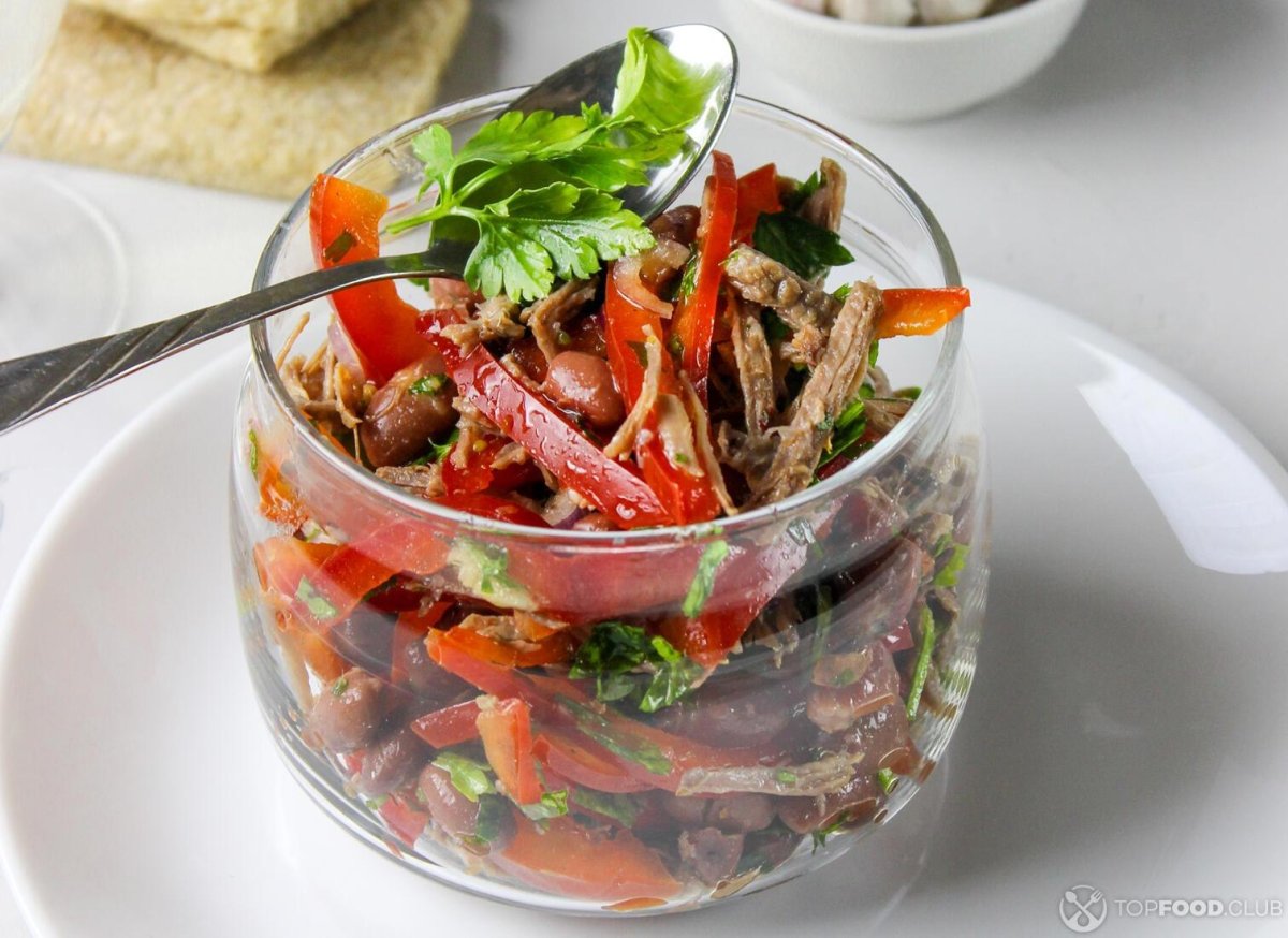 Салат с говядиной и фасолью