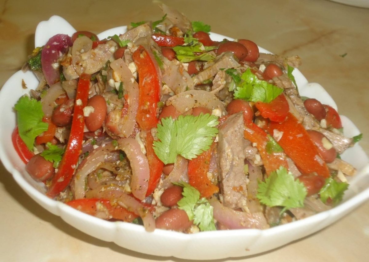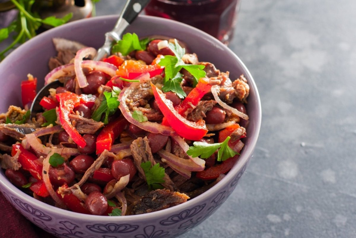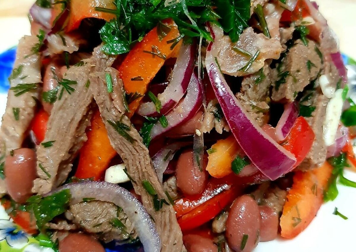Салат из говядины с фасолью