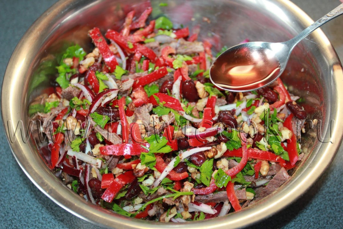 Салат Тбилисский с красной фасолью и говядиной