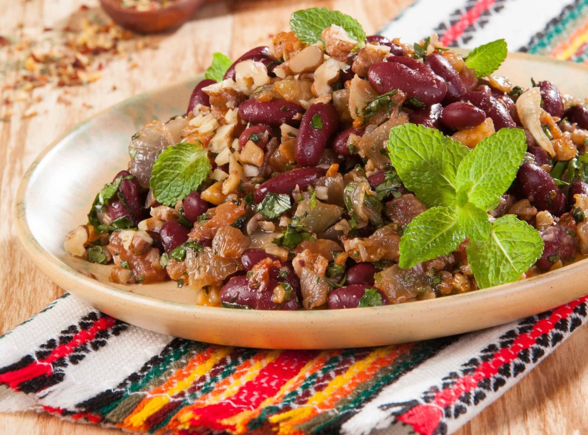 Грузинский салат с фасолью и орехами